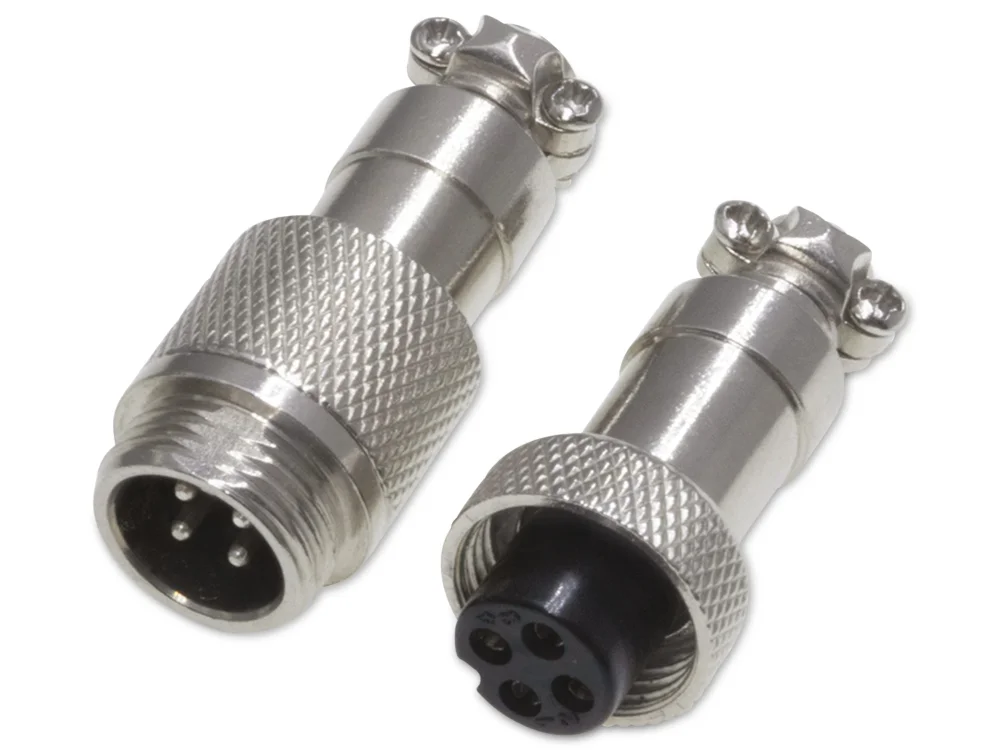 Zertifiziert Rundsteckverbinder, 4-polig, 60V, 2A, Lötanschluss, IP55, wire to wire, 1 Stecker + 1 Buchse